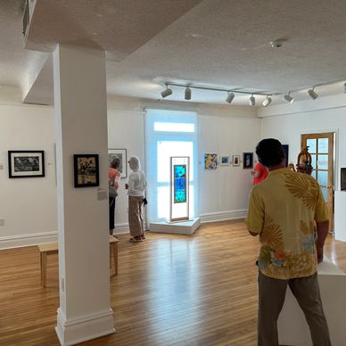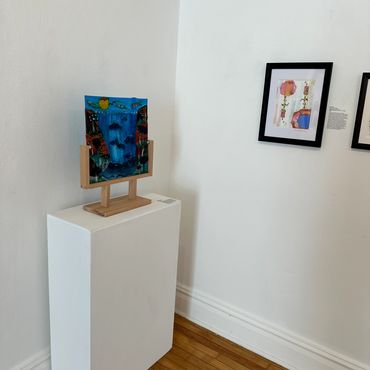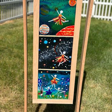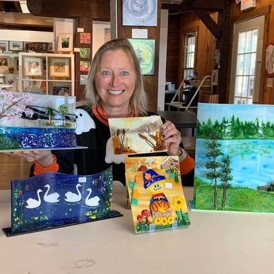 Fused Glass Artist Terri Rider won entry for the Nationally juried exhibition at the South Haven Center of the Arts in South Haven, MI in July of 2025. The theme was "Fantastical." Terri created two pieces for this competition, "Chasing Waterfalls" and "Catch a Star". Both pieces won entry out of 160 applications and only 65 pieces were accepted. This photo shows Terri's "Catch a Star" on display during the exhibition.
