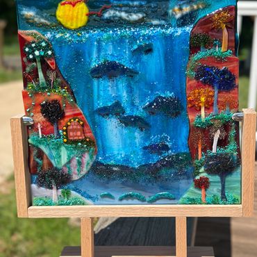 Pictured is Terri's second piece "Chasing Waterfalls" that she created for the South Haven Center of the Arts juried show themed "Fantastical".