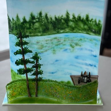 The South Haven Center of the Arts in South Haven Michigan, had a members only exhibition titled "Water Ways: Reflect and Connect." As a member, Terri created this piece just for this show. She did a beautiful 3D piece of a tranquil lakeside scene.